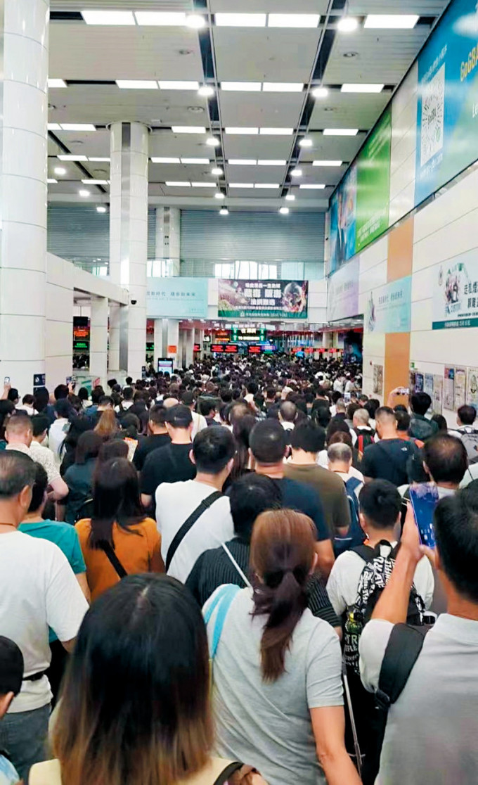 ▲深圳灣口岸昨早人滿為患,警方一度呼吁市民改用其他口岸進(jìn)入內(nèi)地。