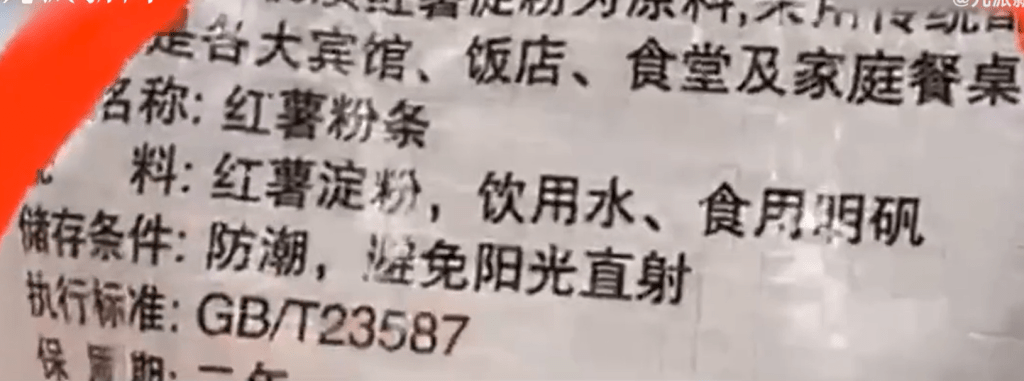 雨姐傳媒在直播中宣稱紅薯粉條“除了紅薯淀粉、飲用水、食用明礬,沒有亂七八糟的”。