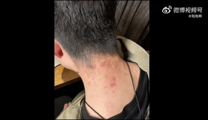 打假博主大娃的攝影師展示傷勢。
