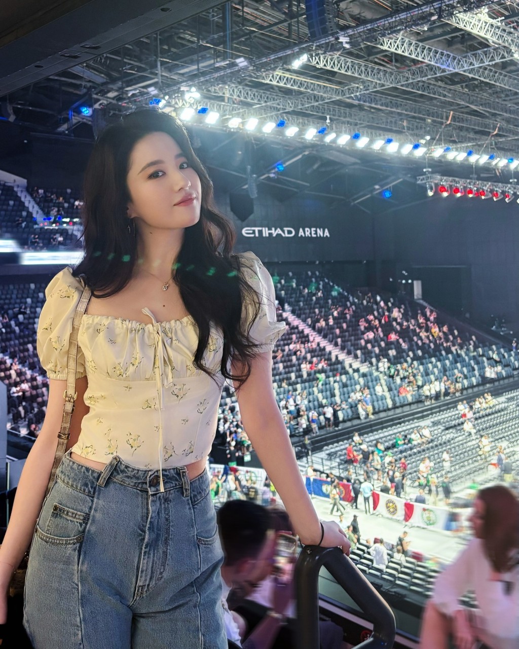 ▲劉亦菲為阿聯(lián)酋首都阿布扎比體驗代言人,近日飛住當(dāng)?shù)乜碞BA季前熱身賽,由應(yīng)屆總冠軍波士頓凱爾特人對上屆冠軍丹佛金塊的賽事。