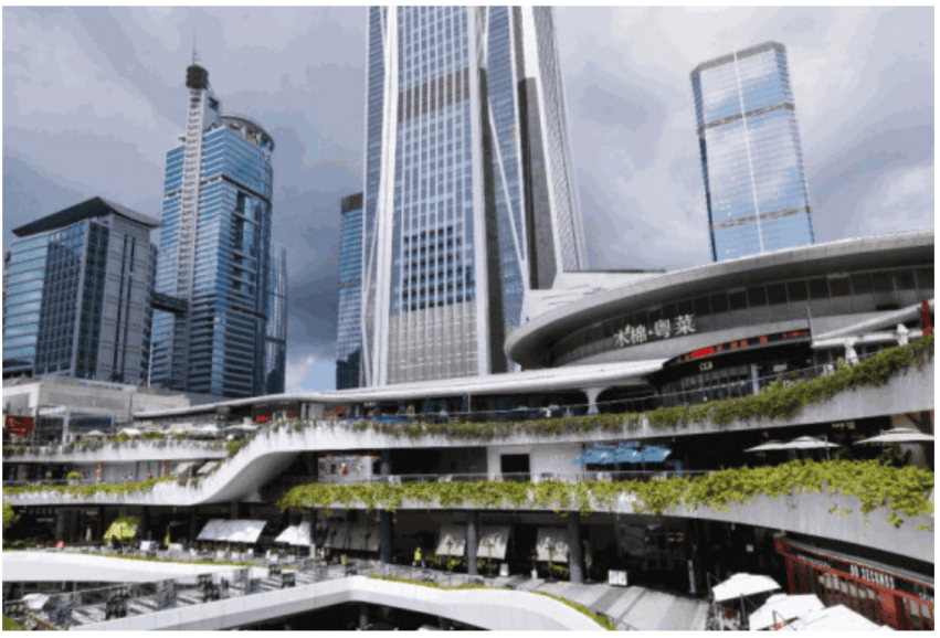 ▲深圳經(jīng)常有新建筑落成,幾乎每個月都會有全新景點登場,但龍華區(qū)新開幕的瑪絲菲爾大廈就非??忌钲谌四托粤?。