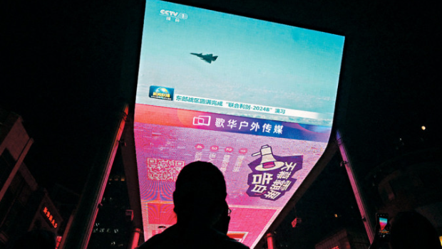 ▲北京市民駐足街頭,關(guān)心有關(guān)環(huán)臺軍演的消息。