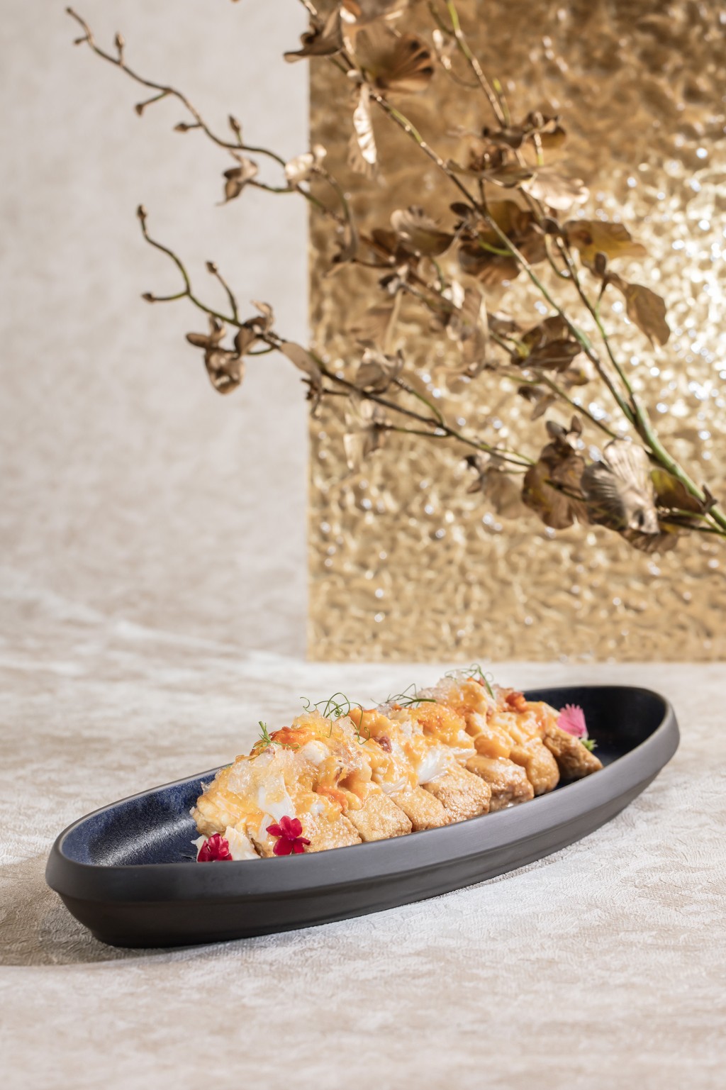 顧客亦可選擇單點各式大閘蟹粉的時令美味。主廚Silas Li以創(chuàng)新的中西結合手法,融合現代烹飪技術與當季食材,全新演繹大閘蟹菜式,重點推介焗蟹粉蟹蓋配法國魚子醬及柚子醬,展現出蟹粉的濃郁鮮甜。法國魚子醬與微酸清新的柚子醬,使整道菜品在蟹油的基底上增添了層次感,為食客帶來美妙的味覺享受。