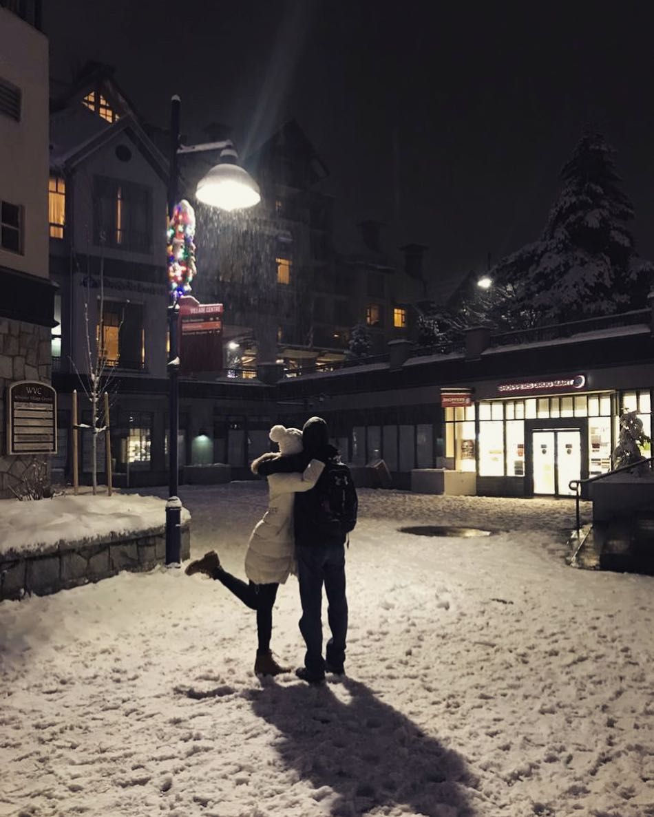鐘嘉欣曾在家門外陪仔女堆雪人。