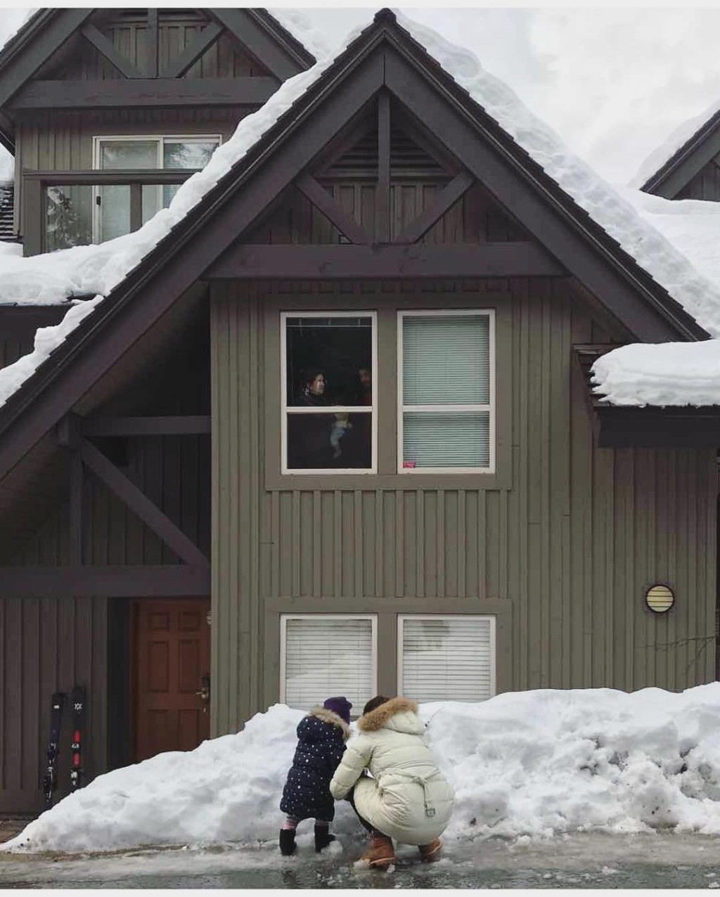 ▲鐘嘉欣曾在家門外陪仔女堆雪人。