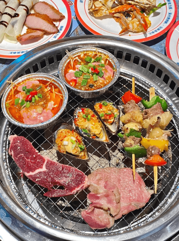 “煙火碼頭海鮮Bazaar自助”占地逾3,000呎,可讓500人同時(shí)用餐,環(huán)境非常闊落。每張桌更設(shè)有炭火烤爐及電磁爐,既可燒肉又可以打邊爐?,F(xiàn)場(chǎng)提提超過(guò)500款美食,分為不同的美食區(qū),包括鮮活海鮮、炭火原切烤肉、鐵板燒、燒烤、日本料理、火鍋涮肉、現(xiàn)烤芝士海鮮、粵式熟食、蒸點(diǎn)燉盅、水果、甜品等。當(dāng)中推薦的就有現(xiàn)撈活蝦、蜆、蟶子、海螺,以及高壓鍋生蠔、澳洲和牛、鮮切潮汕牛肉、佛跳墻、現(xiàn)炒酸奶等,無(wú)論是燒烤、火鍋、鐵板燒也相當(dāng)吸引!水果、甜品及飲品區(qū)亦不失色,每區(qū)都有數(shù)十款選擇,猶如去了另一個(gè)超市般,難怪有網(wǎng)民稱(chēng)在這裡用餐是“超霸氣”、“吃完真的要扶墻而出”。