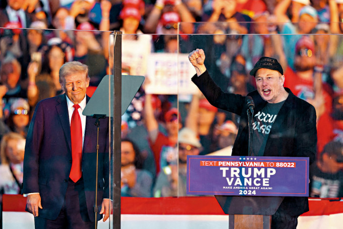 馬斯克10月5日在賓夕凡尼亞州,亮相特朗普的造勢(shì)集會(huì)。