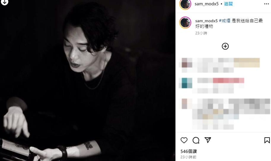 ▲Sam16日就在IG上發(fā)文,表示:“戒煙是我送給自己最好的禮物?!倍潭桃幌挘鹜饨绮聹y是否好事近了?
