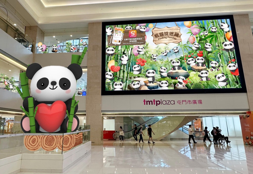 屯門市廣場(chǎng)擺放7.5米高巨型毛毛充氣熊貓,帶同它們最愛的竹子,成為有趣場(chǎng)景,正好讓大家一同前來感受熊貓的愛與祝福。 大電視于每日特定時(shí)間將會(huì)開始“熊貓捉迷藏”互動(dòng)游戲,顧客可以透過手機(jī)應(yīng)用程序答中問題,即有機(jī)會(huì)獲得熊貓?jiān)煨投Y品、香港富麗敦海洋公園酒店餐飲券及商戶優(yōu)惠券等。