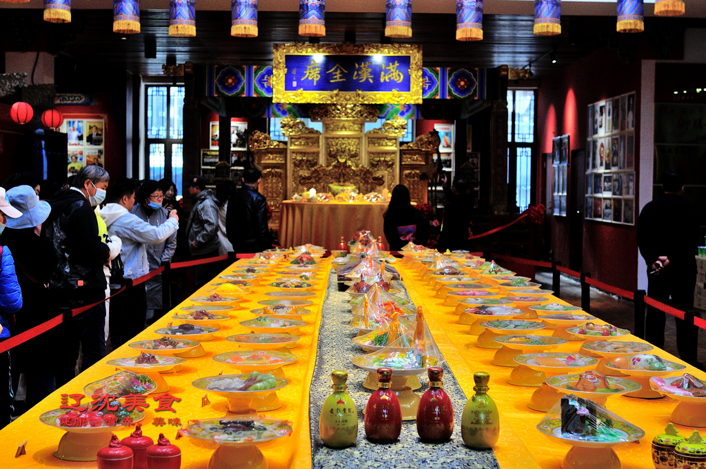 ▲沈陽故官曾模擬過滿漢全席的設(shè)置。
