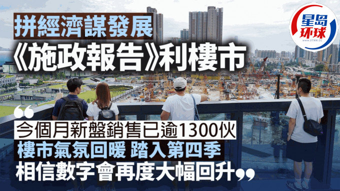 踏入第四季相信新盤銷售會再度大幅回升,相信大家亦明白,因應過去第三季新盤市場顯著落后,新盤銷售“不似預期”,特別是今年是新盤落成的高峰期,目前不少新盤以現(xiàn)樓形式或是短期樓花推售,發(fā)展商仍然需要急于將現(xiàn)樓貨尾“去庫存”,樓市氣氛回暖,對整體經(jīng)濟改善是相當明顯,期望《施政報告》能刺激第四季新盤銷售進一步上升。