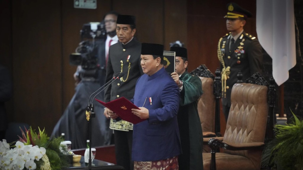 普拉博沃宣誓就任印尼總統(tǒng),成為該國(guó)最年長(zhǎng)總統(tǒng)。
