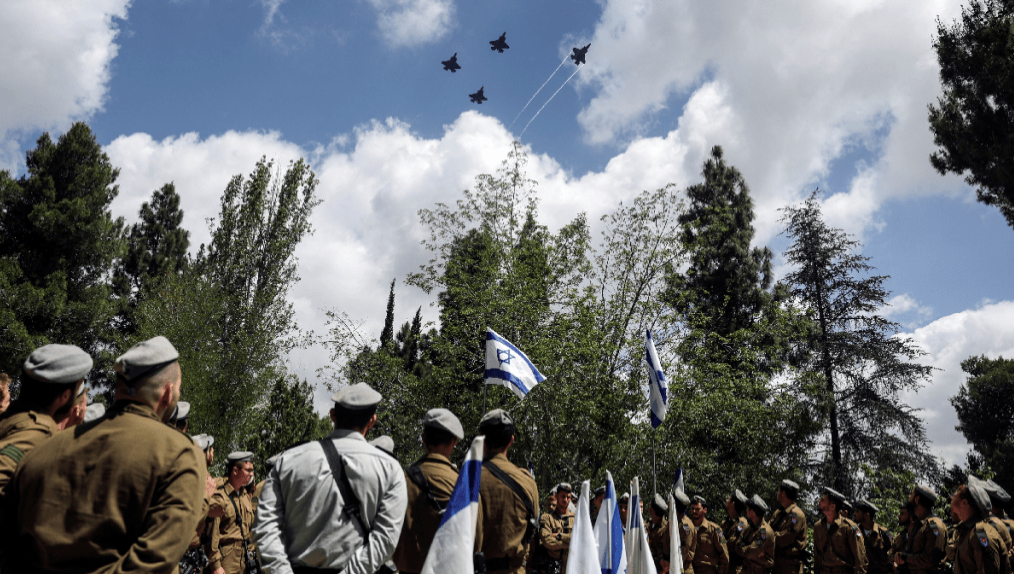 以色列士兵與戰(zhàn)斗機向陣亡將士致敬。