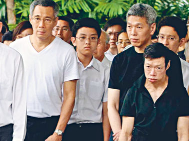 ▲李顯龍、李顯揚(yáng)、李瑋玲二〇一五年攝于李光耀的喪禮。