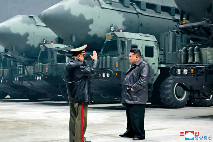 ▲金正恩視察洲際導(dǎo)彈基地