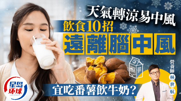 中風(fēng)是香港第4位致命疾病,近日天氣轉(zhuǎn)涼,容易增加風(fēng)險。吃什么可保護(hù)心腦血管,預(yù)防中風(fēng)?有營養(yǎng)師提出防中風(fēng)10大飲食方法,吃番薯、飲牛奶也有效遠(yuǎn)離風(fēng)險?