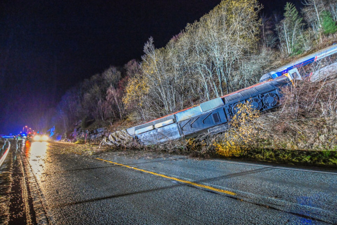 警方表示,一輛列車和幾節(jié)火車車廂脫軌。在電視畫面顯示,一輛列車從山坡上滑落后側(cè)翻,幾節(jié)車廂也脫軌。報道指,事發(fā)地區(qū)近期降雨頻繁,發(fā)生過山泥傾瀉。挪威鐵路公司發(fā)言人說,事故原因仍在調(diào)查中。