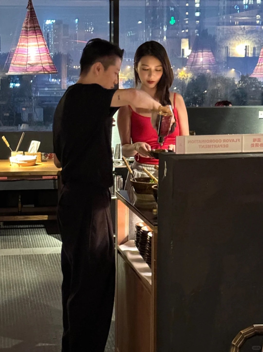 從多方圖片所見,薛凱琪與一名神秘黑衣男,在醬料區(qū)調(diào)配醬料,期間黑衣男溫柔地幫薛凱琪倒醬料,其后又一齊行回到座位。不過其實(shí)在相片中,薛凱琪這個(gè)飯局隨行者約有三至四名友人,不過黑衣男全程傍實(shí)薛凱琪,二人神態(tài)自然,難道薛凱琪北上發(fā)展后,事業(yè)愛情兩得意?