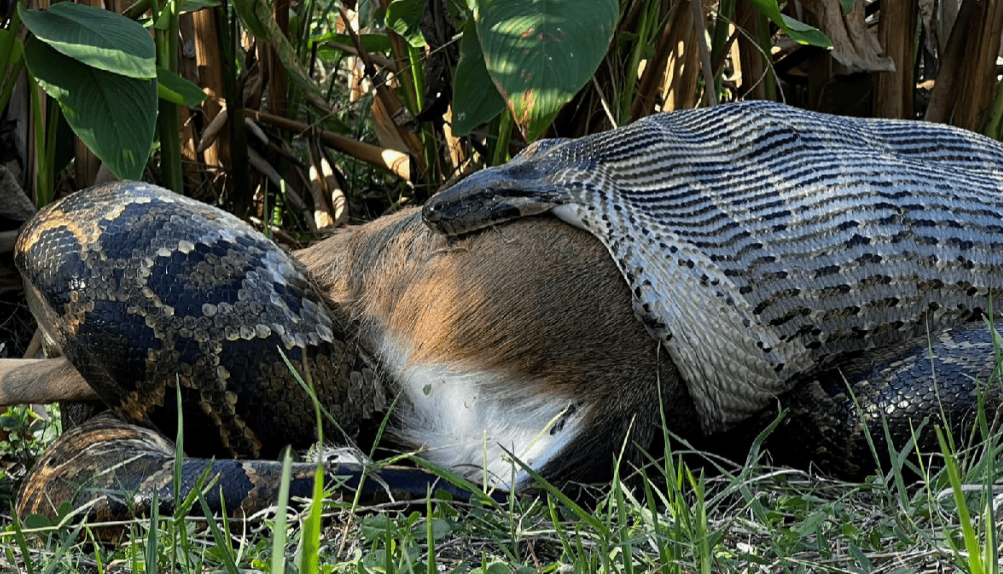 美國動物學家目擊,緬甸蟒活吞成年鹿