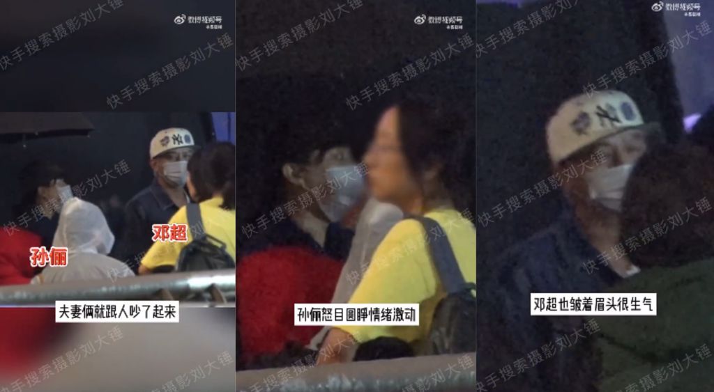 內(nèi)地狗仔劉大錘釋出一段孫儷與鄧超在街邊與路人爭吵的影片,當(dāng)中可見孫儷雖然戴著口罩及帽子,但仍可看得出她相當(dāng)焦急,時而關(guān)注手機(jī)訊息、打電話,時而環(huán)顧四周,沒多久后她便帶著孩子一起去找鄧超。