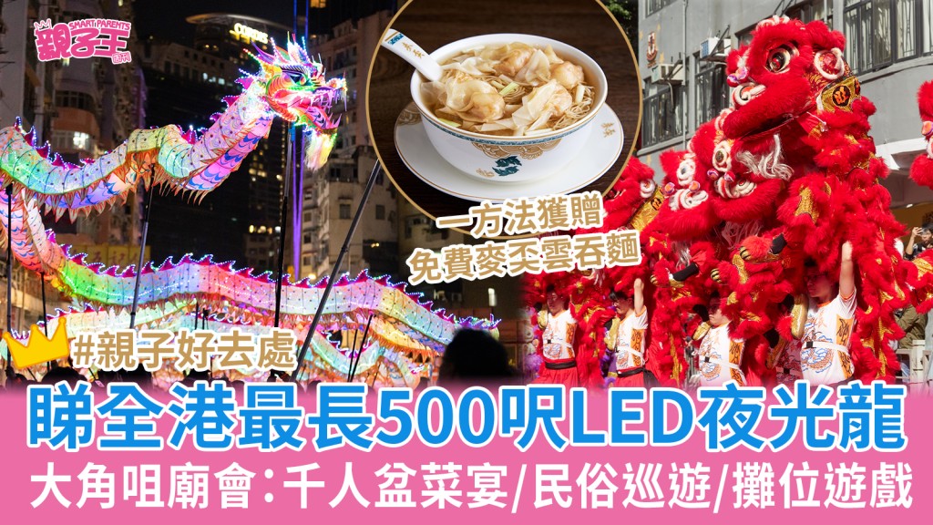 大角咀廟會香港最長LED夜光龍登場!千人盆菜宴/民俗巡游