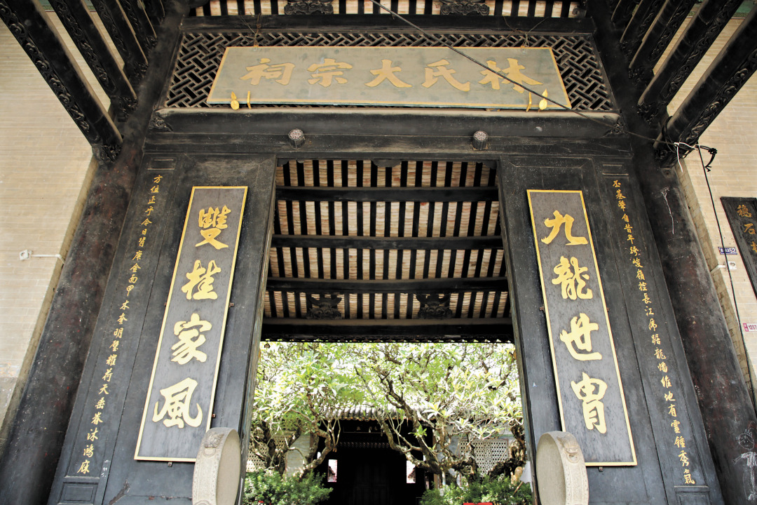 走進(jìn)穗石村,林氏大宗祠正在維修,兩扇大門上畫有高大威武的門神——秦叔寶和尉遲恭,兩側(cè)有一副對(duì)聯(lián),上書“九龍世胄雙桂家風(fēng)”,說的是先祖中有兩兄弟同時(shí)中舉,兩代人九子同時(shí)在朝中做官的故事。91歲的村民林銘康介紹,曾有福建同宗在電視上看到穗石村的這副對(duì)聯(lián),一下子驚呼起來,發(fā)現(xiàn)兩地林姓系出同源。