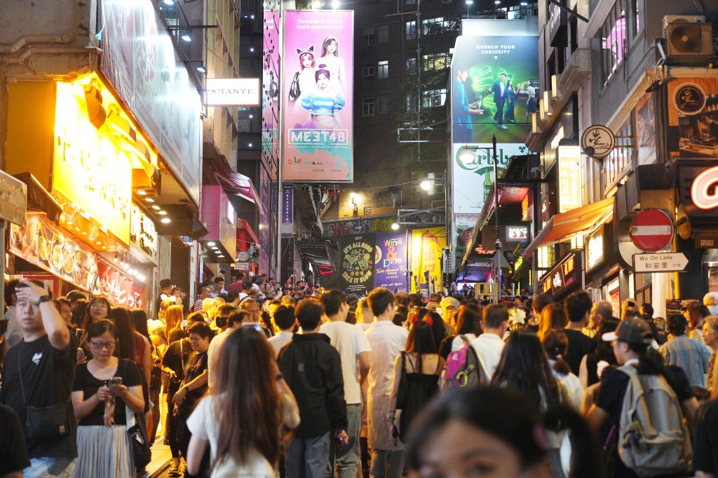 ▲蘭桂坊入夜后人流漸增。