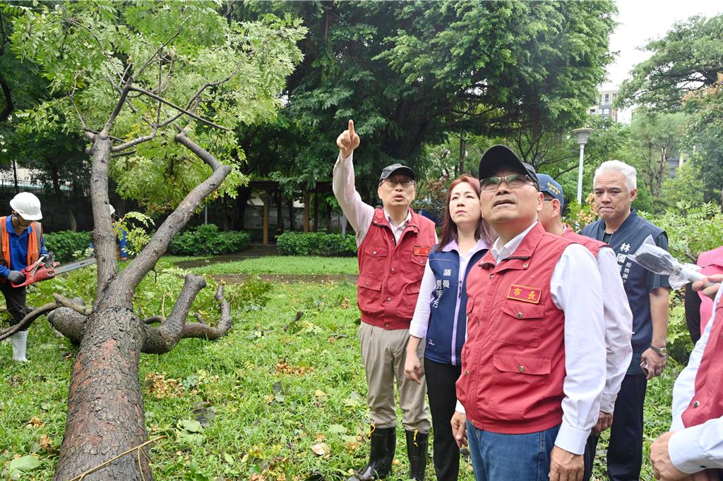 ▲侯友宜于上午10時(shí)40分前往“板橋國光公園”以及環(huán)河公園視察路樹傾倒復(fù)原情形。