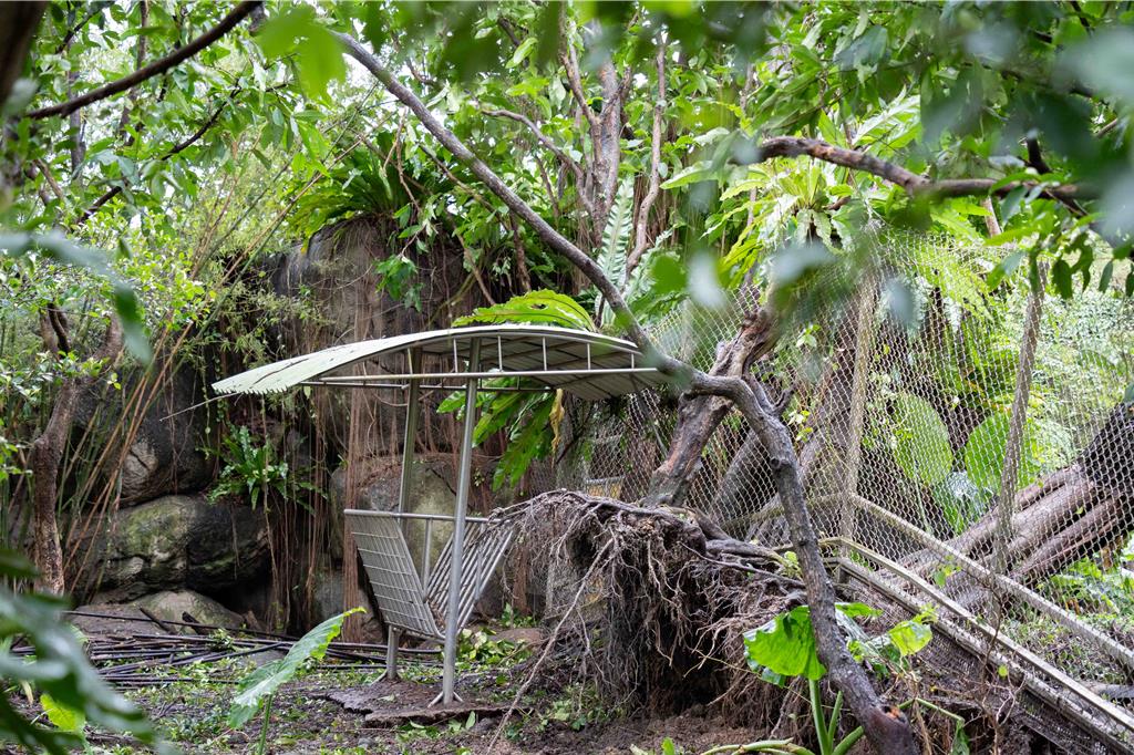 ▲動物園臺灣動物區(qū)山羌及梅花鹿戶外活動場樹木受強風(fēng)連根拔起。 臺北市立動物園