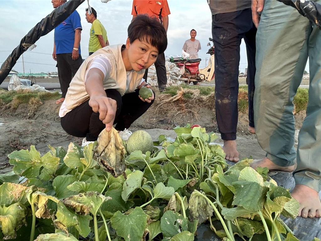 陳亭妃昨日下午在北門(mén)區(qū)錦湖里長(zhǎng)陳國(guó)庸的帶路下,前往多處洋香瓜田勘災(zāi);今天一早與東山區(qū)公所人員實(shí)地了解東原2號(hào)橋的下陷狀況,之后再到將軍區(qū)洋香瓜田關(guān)心農(nóng)友。