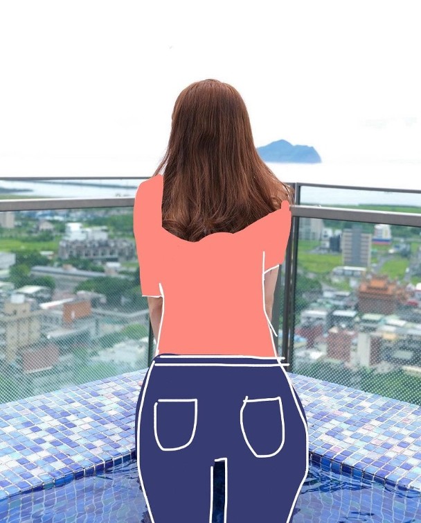 ▲日前冼迪琦就在IG上分享了一張?jiān)诼短煊境乇硨?duì)鏡頭的水著相,大施“股惑”!