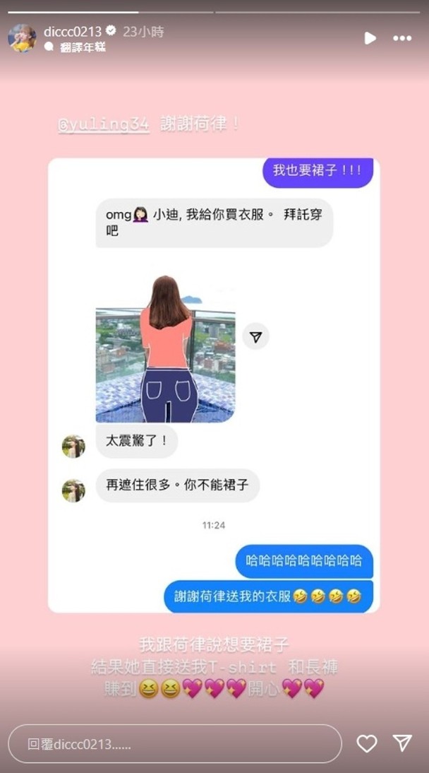 其后冼迪琦更曬出與隊(duì)友邊荷律對(duì)話,表示自己的大尺度水著相嚇親對(duì)方,當(dāng)中邊荷律便驚呼:“omg小迪,我給你買衣服。 拜托穿吧”,隨后更幫冼迪琦畫(huà)上衫褲,說(shuō):“太震驚了! 再遮住很多。 你不能裙子”,二人互動(dòng)引來(lái)網(wǎng)民爆笑,大贊冼迪琦身材一流。