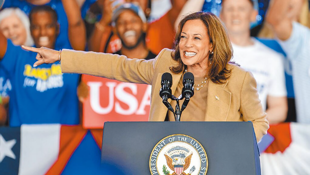 ▲美國愛荷華州一向是支持共和黨的“紅州”,2日卻傳出當(dāng)?shù)孛裾{(diào)顯示,民主黨總統(tǒng)候選人哈里斯(見圖)竟然超車,領(lǐng)先共和黨特朗普3個百分點(diǎn),為大選投下震撼彈。(路透)