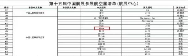 ▲珠海航展中國空軍參展戰(zhàn)機名單出現(xiàn)”殲-35A“。