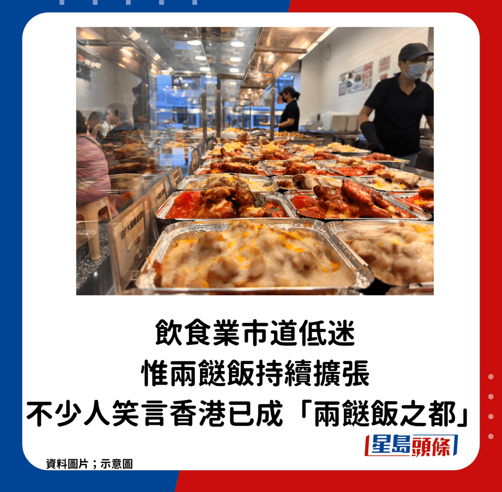 飲食業(yè)市道低迷,惟兩餸飯店持續(xù)擴(kuò)張,不少人笑言香港已成“兩餸飯之都”