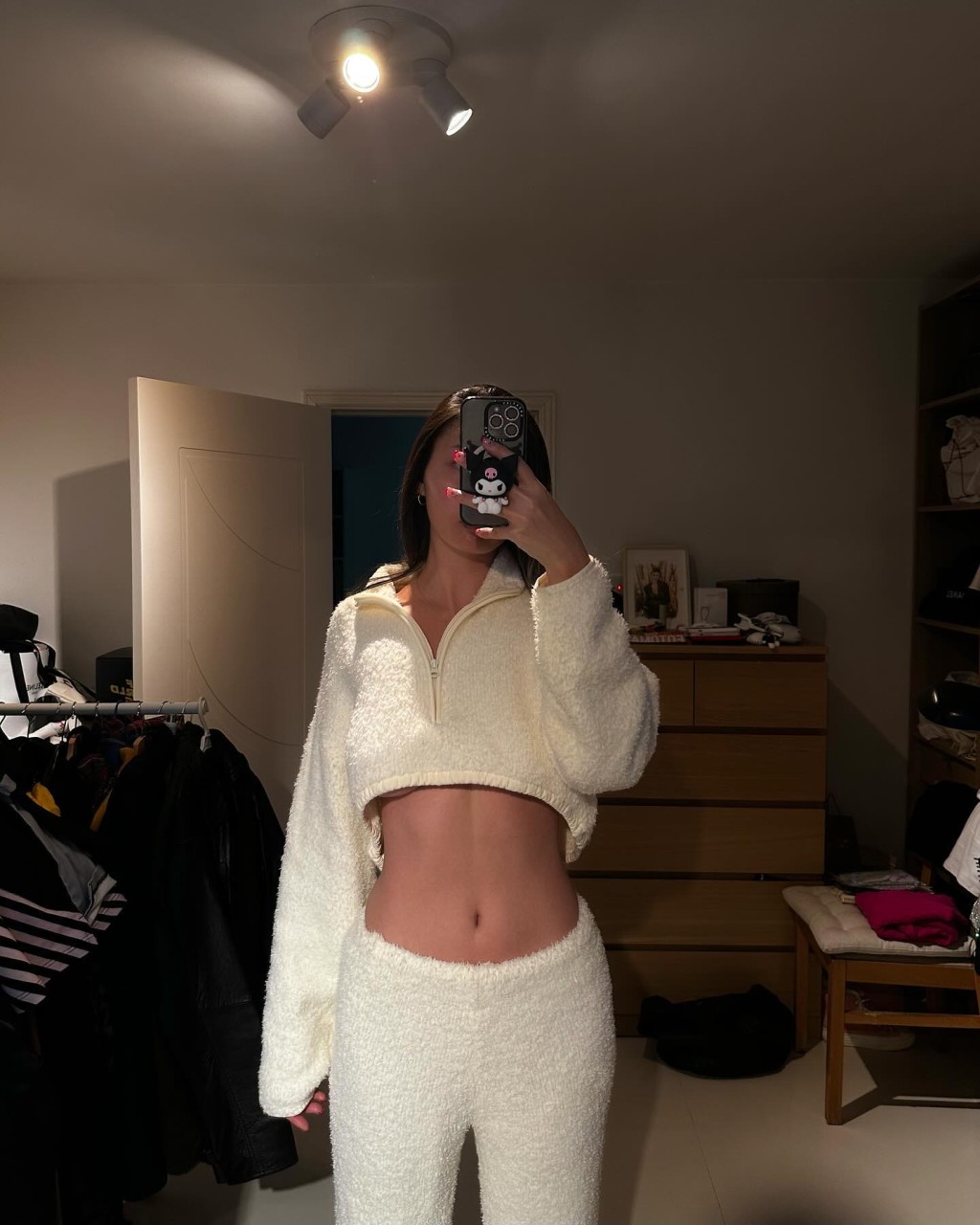 9日,王曼喜在IG上發(fā)佈了一條對(duì)著鏡頭換衫的短片,片中可見王曼喜先是穿著一套淺灰色內(nèi)衣入鏡,圓渾上圍及深長(zhǎng)事業(yè)線一覽無遺,更因其內(nèi)衣的透視設(shè)計(jì),可以明顯見到王曼喜露點(diǎn),然后她在扣牛仔褲的鈕扣時(shí)也露出了內(nèi)褲邊,性感尺度讓人充滿遐想!其后王曼喜便穿上一件白色長(zhǎng)袖底衫及印有紅色水果圖案的T恤,再穿上黑色長(zhǎng)皮褸及酒紅色長(zhǎng)靴,整體造型既簡(jiǎn)約又不失質(zhì)感。