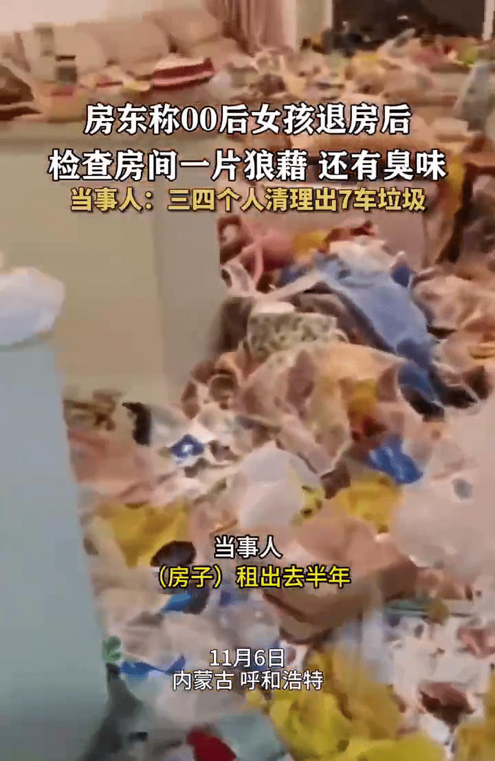 “內(nèi)蒙古女孩租房半年房東4天清出7車垃圾”的消息日前沖上內(nèi)地社媒熱搜。