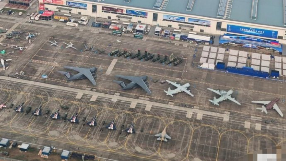 珠海航展12日開幕,網(wǎng)民拍下各表演飛行隊(duì)的飛機(jī)就位。