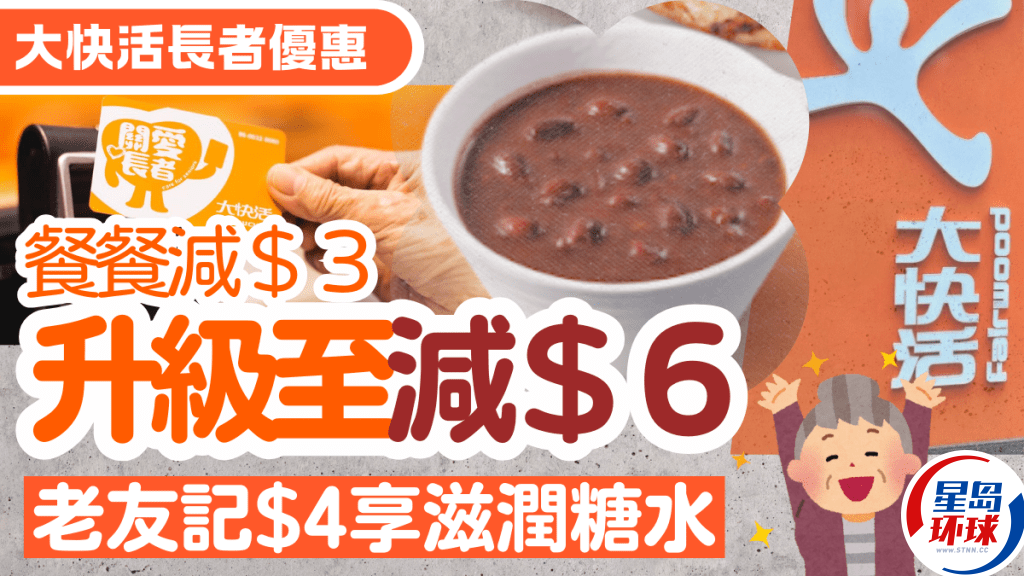 大快活長(zhǎng)者優(yōu)惠升級(jí)!持“快活關(guān)愛(ài)長(zhǎng)者卡”餐餐減$6/加$4即享滋潤(rùn)糖水