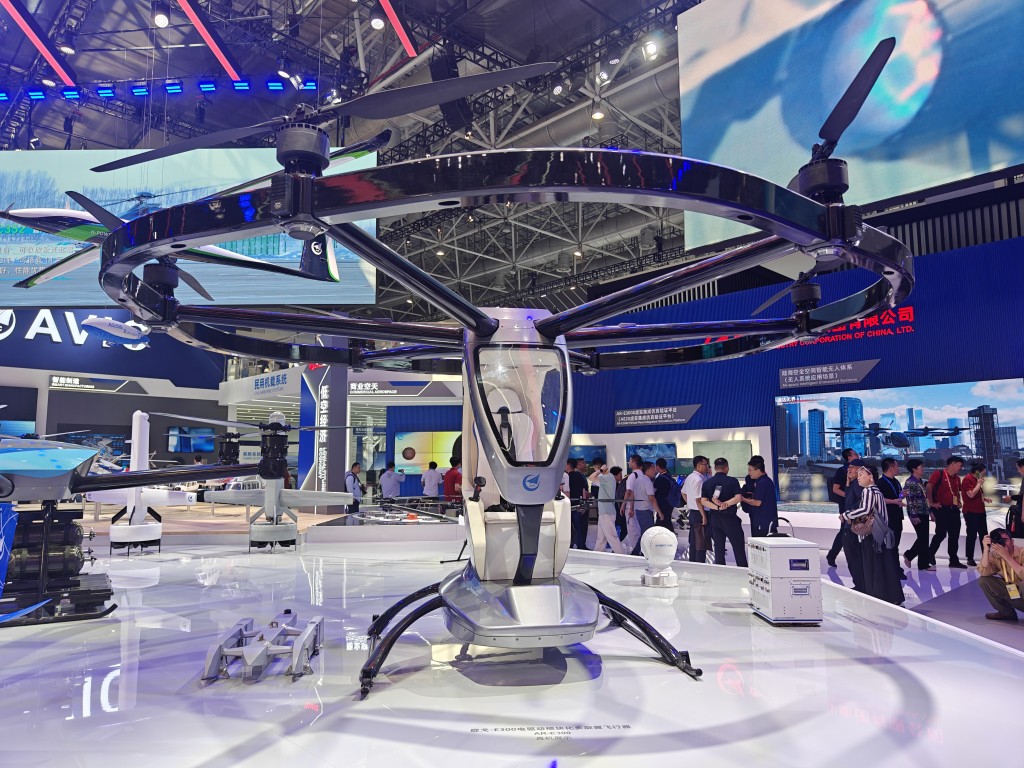 低空經(jīng)濟展區(qū),一系列多旋翼飛行器真機展出。