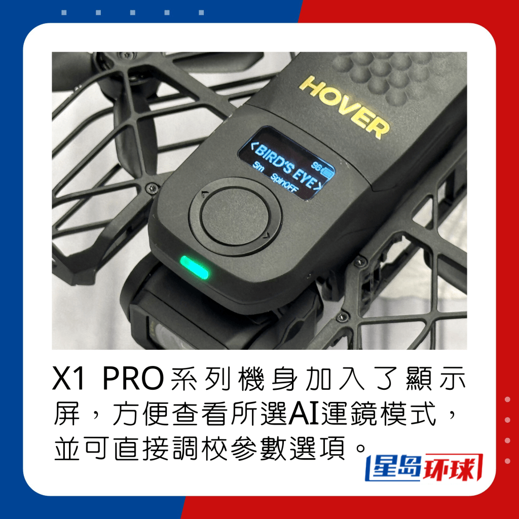 X1 PRO系列隨跟自拍時,往住需要向后飛行,故退后避障非常重要,今代飛行器尾部均裝有dToF測距傳感器,X1 PROMAX更多了視角傳感器,退后飛行時主動避障能力更出色,必要時還可來個急煞。 一如X1系列那樣簡單易用,X1 PRO系列不用遙控或手機App,直接放在手掌上,即可以升降,為方便初學(xué)者,還預(yù)設(shè)多種AI智能運鏡模式,包括跟隨、環(huán)繞、俯拍、漸遠(yuǎn)等等,加上X1 PRO系列新增顯示屏,選擇模式更方便,且可直接調(diào)校高度及距離等參數(shù)。