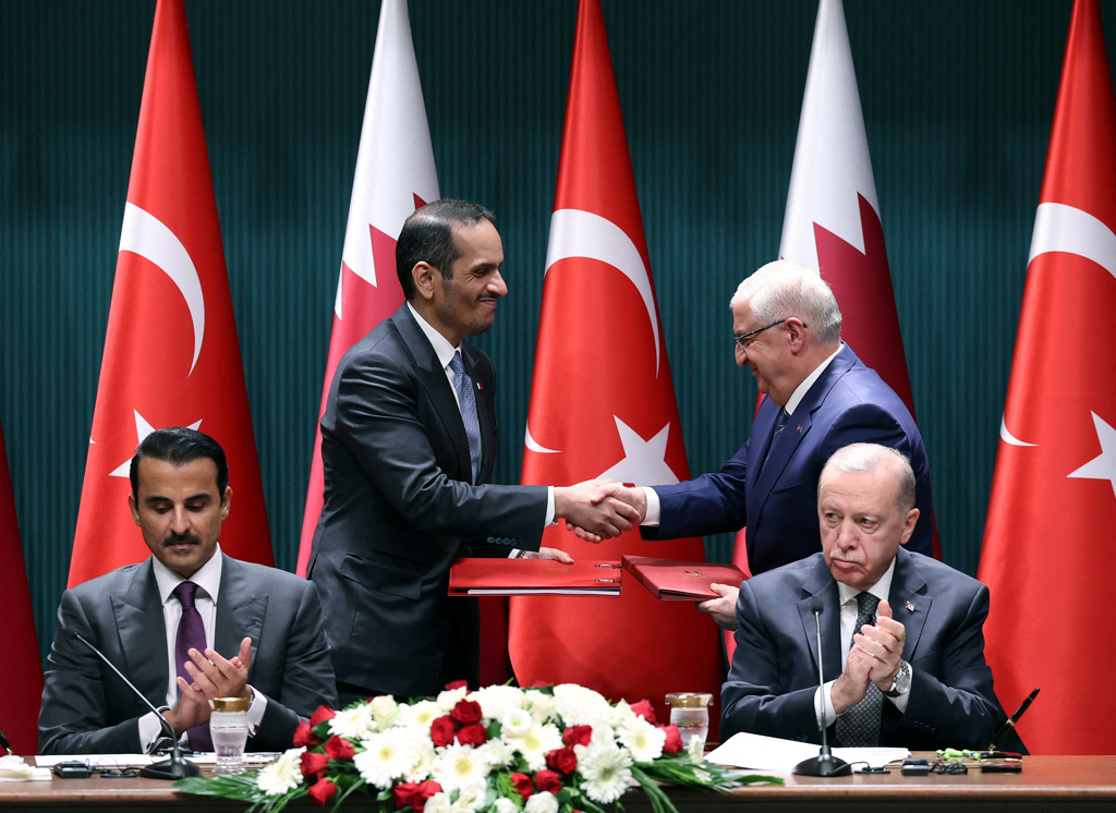 2024年11月14日,土耳其總統(tǒng)艾爾多安和卡達國王塔米姆于 在土耳其安卡拉總統(tǒng)府出席簽字儀式。(路透社)