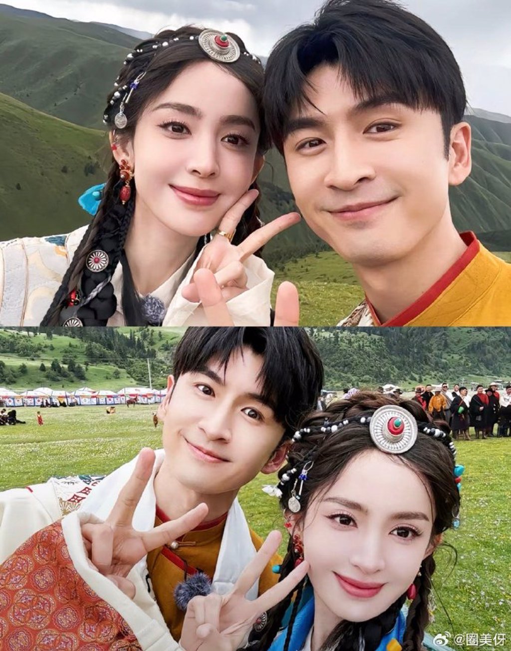 ▲古力娜扎與張?jiān)讫堅(jiān)缜霸煌瑓⒓觾?nèi)地綜藝節(jié)目《旅行任意門(mén)》。