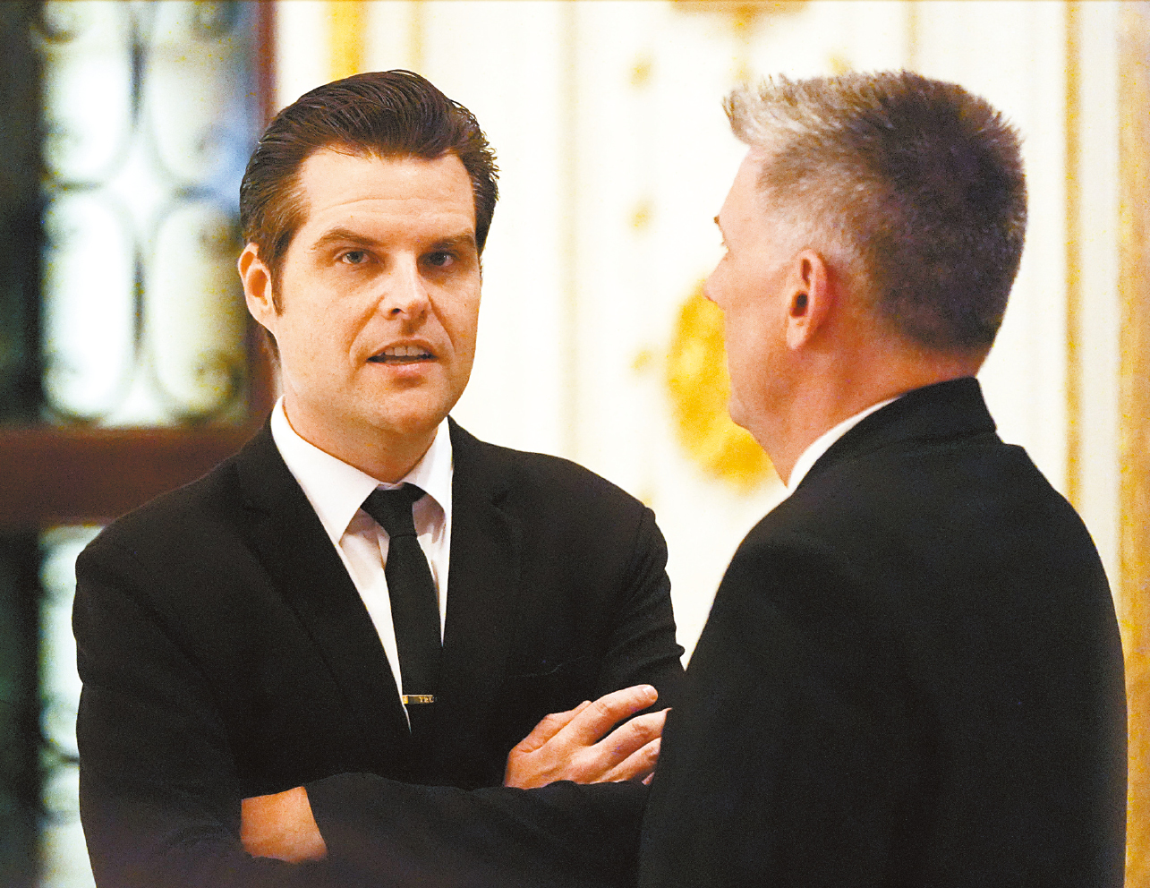 蓋茨(左)獲特朗普委任為新一屆政府的司法部長(zhǎng)。