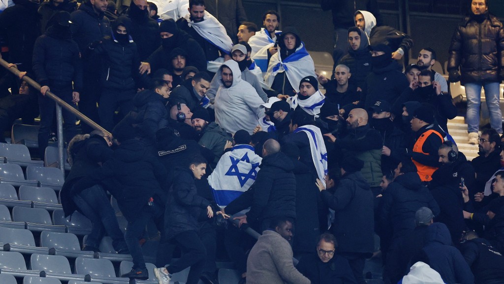 繼荷蘭阿姆斯特丹發(fā)生以色列球迷遇襲事件,周四在巴黎法蘭西體育場舉行的歐洲國家聯(lián)賽法國對(duì)以色列賽事高度戒備,但現(xiàn)場仍有球迷沖突。