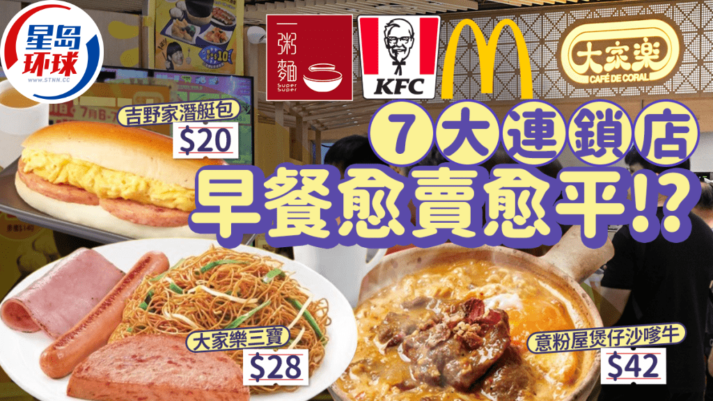連鎖店早餐優(yōu)惠|7大食肆最平18港元有交易!KFC粥/大家樂三寶配炒面/意粉屋沙嗲牛