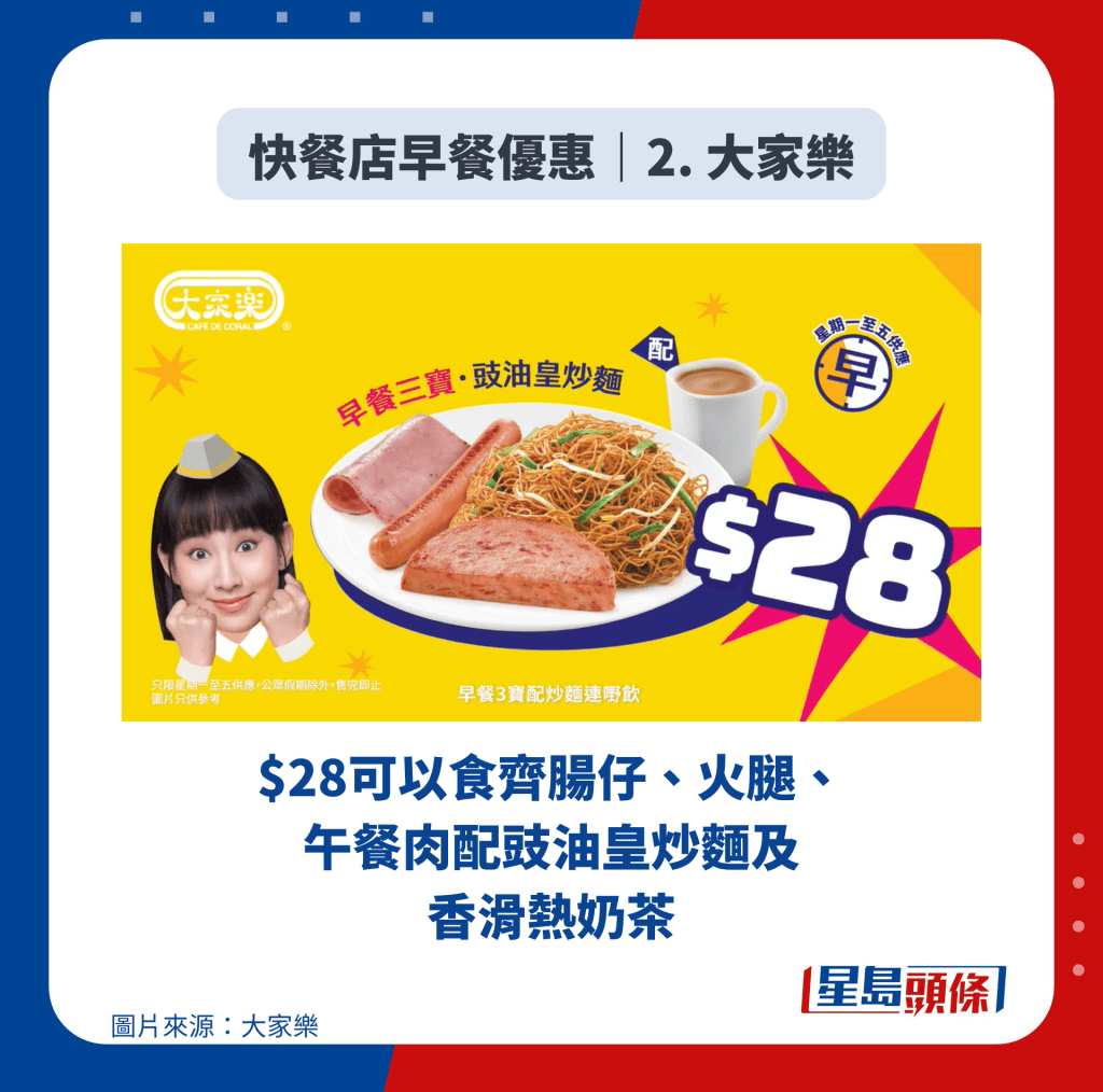 早餐優(yōu)惠|2. 大家樂 早餐三寶配炒面快閃價(jià)$28