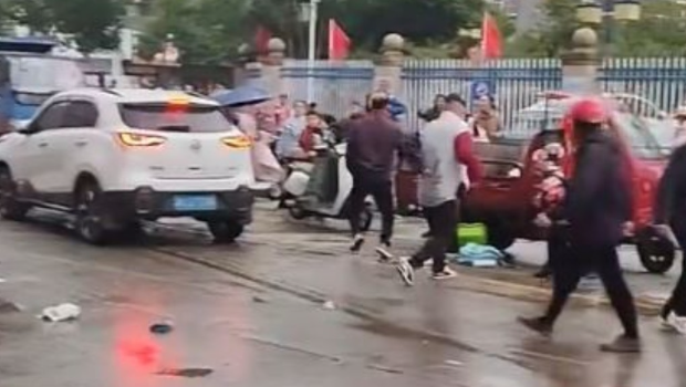 影片中,現(xiàn)場有多名成人及小學生倒地,疑似受傷,涉嫌撞人汽車停下后,被其他民眾包圍,在場其他學生則受驚狂奔逃入校園,以策安全。