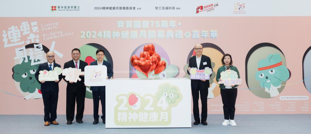 ▲精神健康月2024以“連系身邊人”為主題,勞工及福利局局長孫玉菡(左三)出席開幕禮。