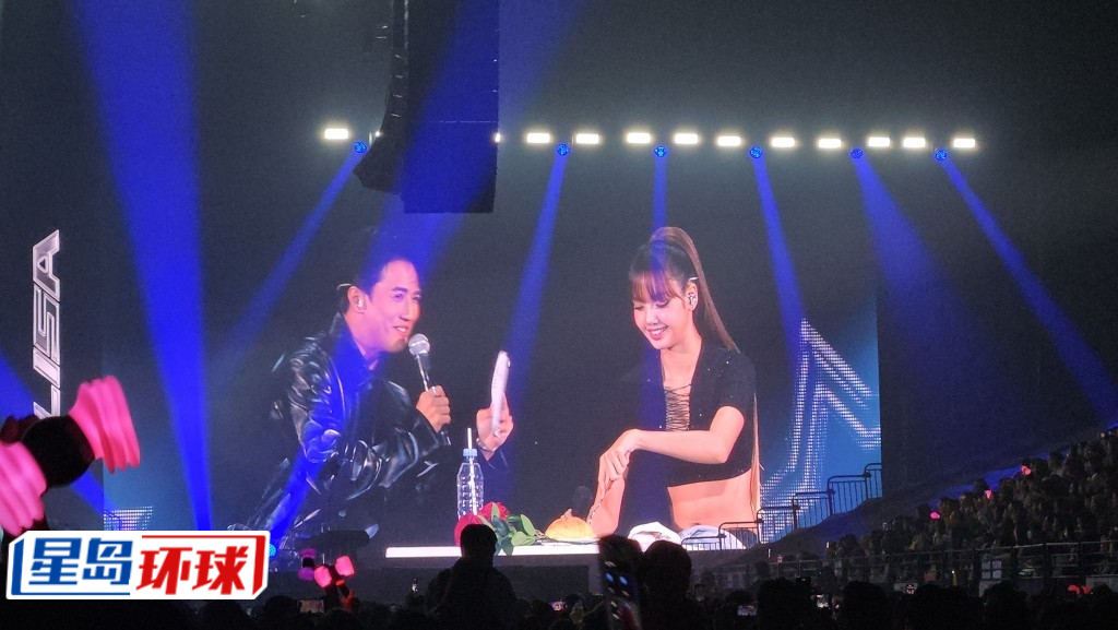 雖然Lisa狀態(tài)不佳,但她仍落力演出,晚上8時45分,黑色造型打扮大曬纖腰、長腿的她,在粉絲的尖叫聲下登場,勁歌熱舞《LALISA》拉起序幕。Lisa以英文表示對上一次來港是跟BLACKPINK隊友來開演唱會,又直言:“我想念我的女孩們?!彼种干洗蝸砀弁娴煤荛_心,所以一直很期待再訪港。Lisa又指香港落雨,一度擔心粉絲來不了,很感謝粉絲到場支持。